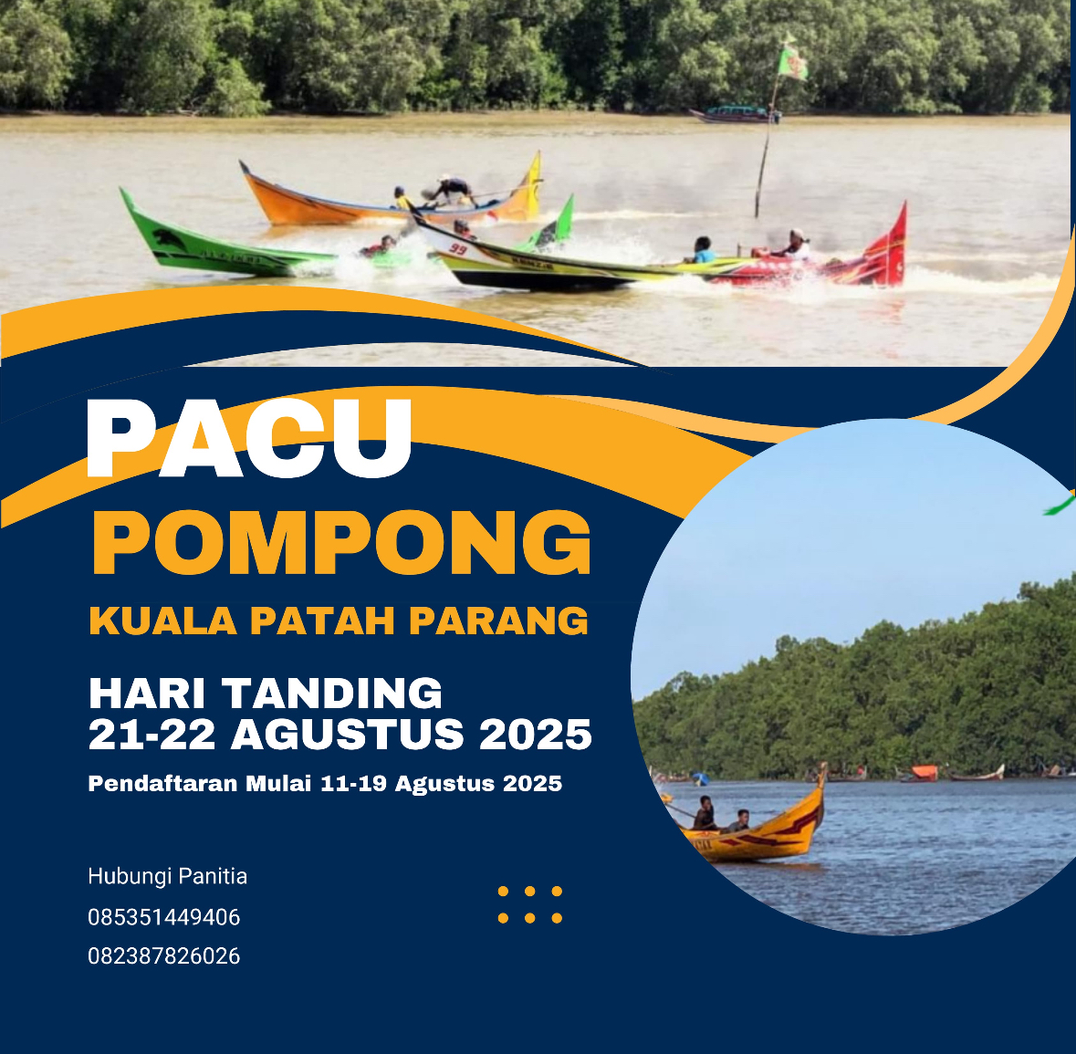 Pendaftaran dibuka 11–20 Agustus 2025, dan siapa saja boleh ikut serta. Info lengkap tersedia melalui panitia lomba. Hingga saat ini, enam pompong dari Kuala Patah Parang telah siap turun ke arena.