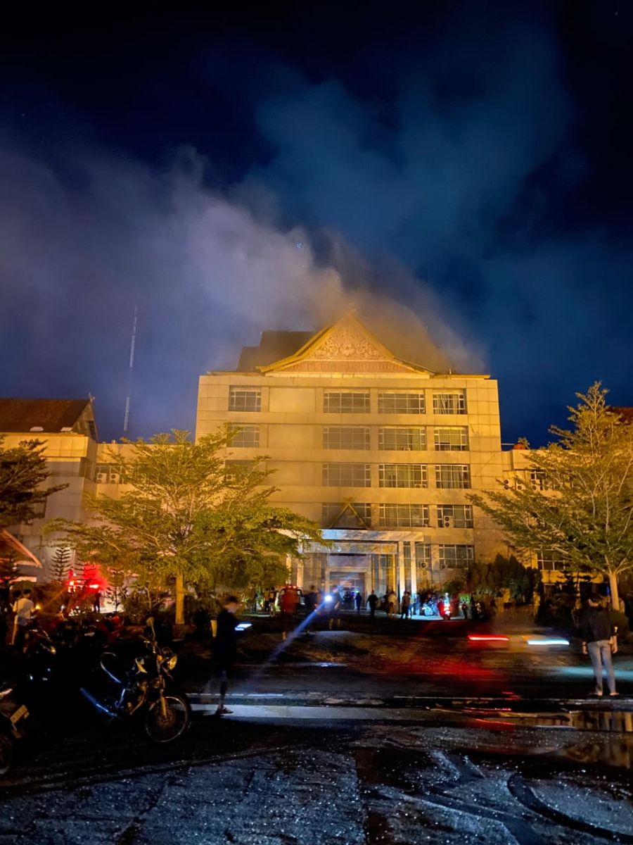 “Berdasarkan informasi petugas di lapangan, api diduga berasal dari lantai dua sisi kanan gedung, tepatnya di area ruang bagian Kesra (Kesejahteraan Rakyat),” ujar Dhoan.