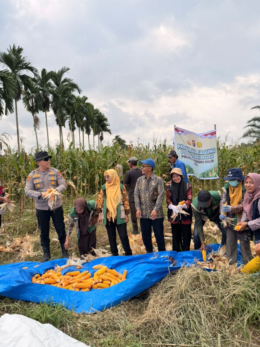 Dukung Program Asta Cita Presiden RI, Polsek Tembilahan Gelar Panen Raya Jagung di Parit Hijrah